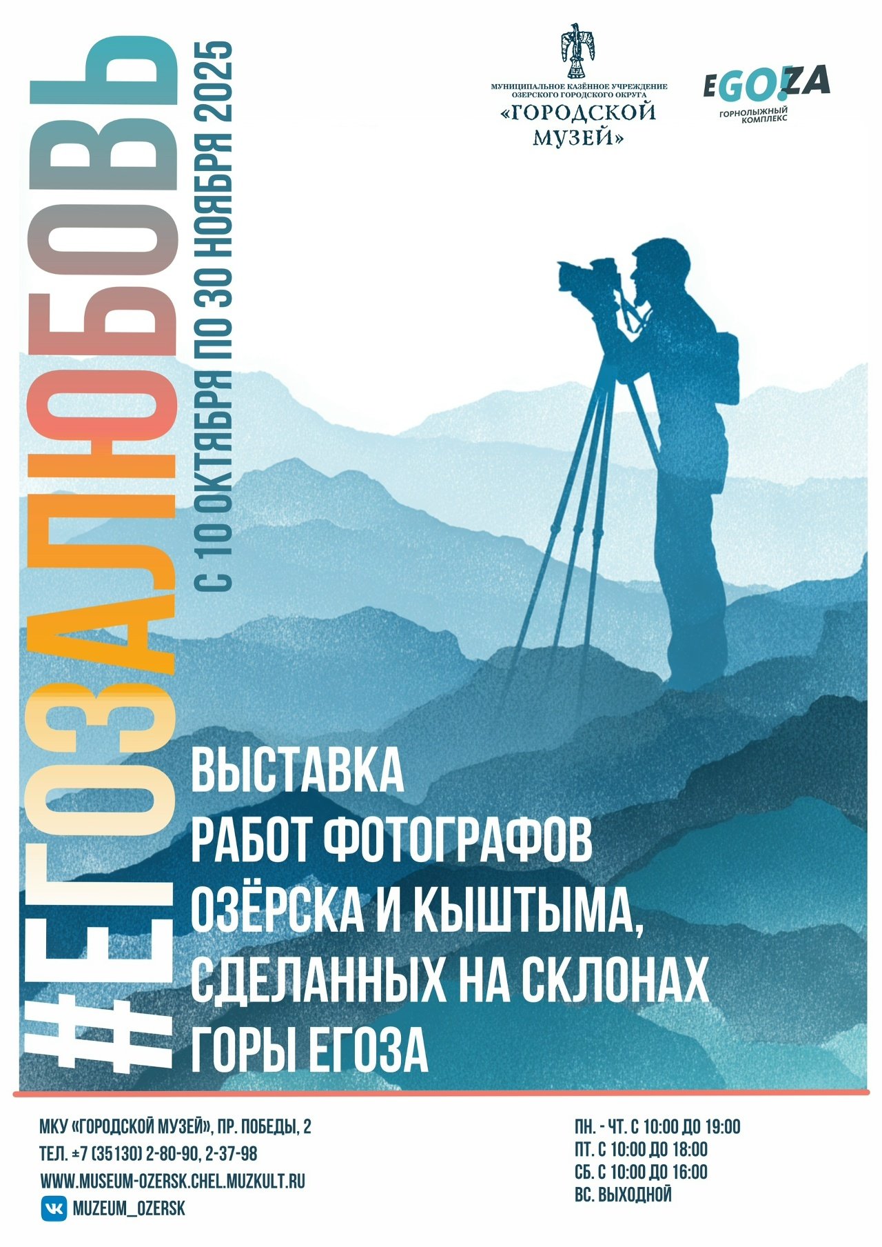 Выставка «Эхо горных вершин» будут экспонироваться с 10 октября по 30 декабря 2025 года, фотовыставка «#ЕгозаЛюбовь» - по 30 ноября 2025 года.